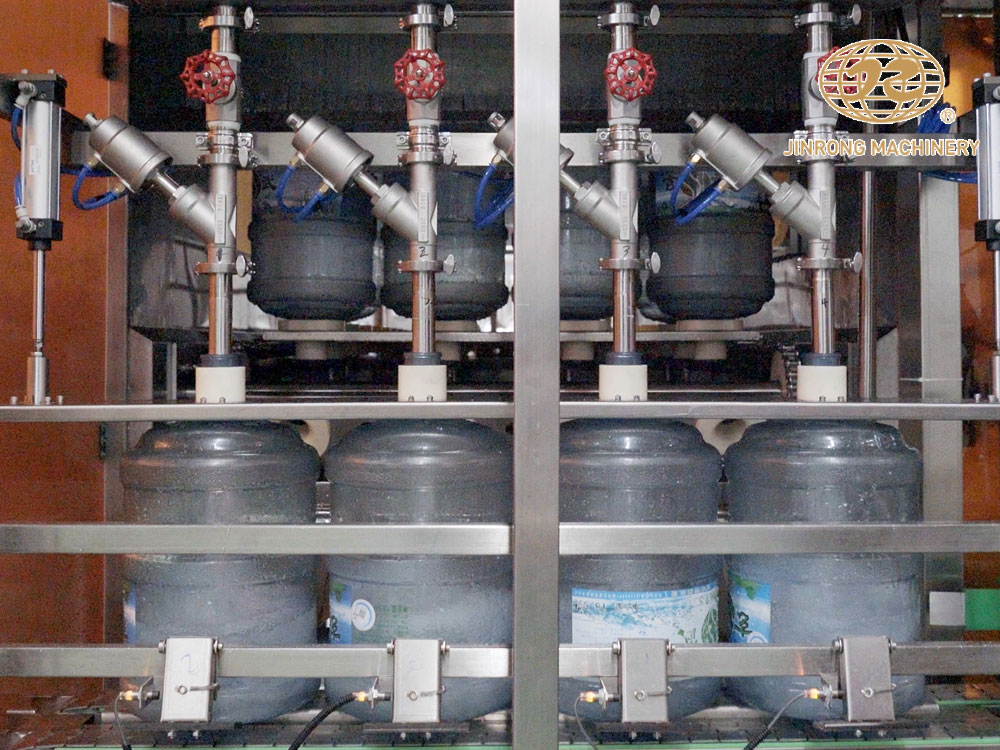 桶裝水灌裝線設備主要由清洗,灌裝,壓蓋三部分組成,主要應用于3加侖和5加侖飲用水的一體化生產。大桶水灌裝生產線由拔蓋機、內外刷桶機、灌裝機、壓蓋機、套標機、貼標機、噴碼機、套袋機等組成。